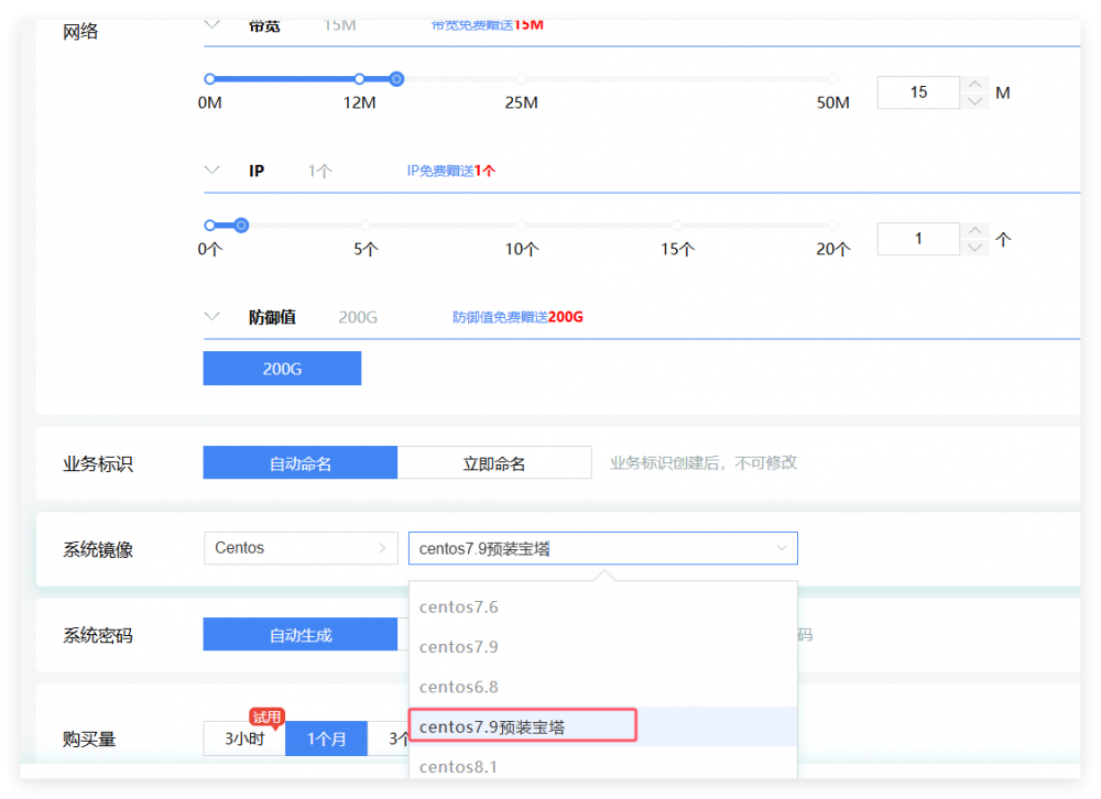 購買時,記得將系統鏡像選擇為centos7.9預裝寶塔。
