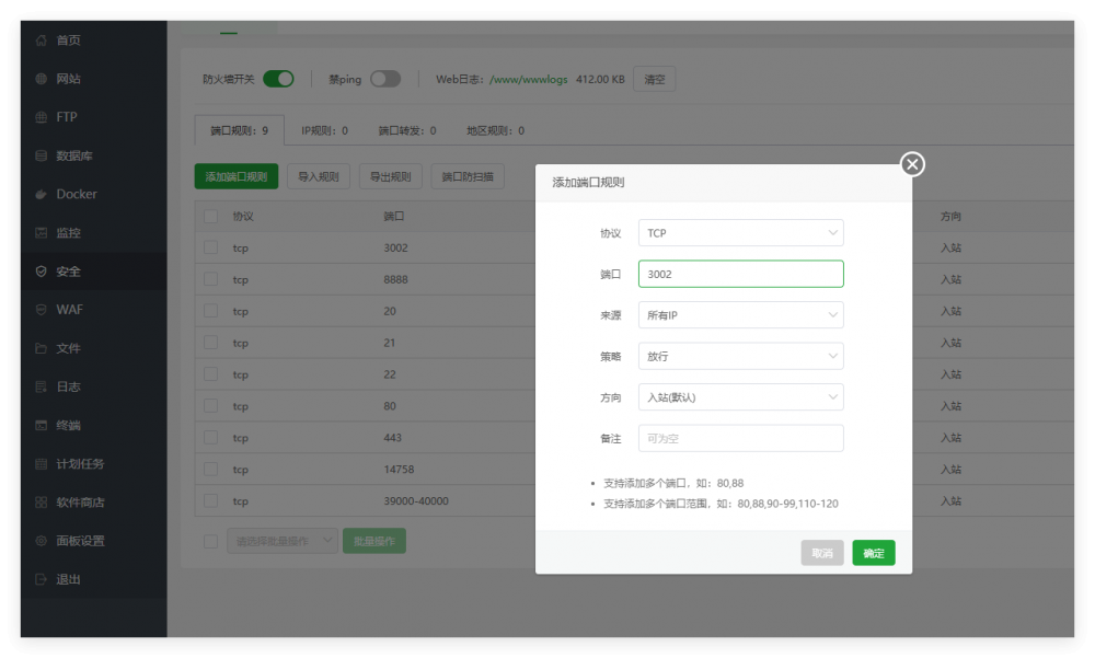 最后進(jìn)入安全-創(chuàng)建端口規(guī)則,將3002端口放行一下。