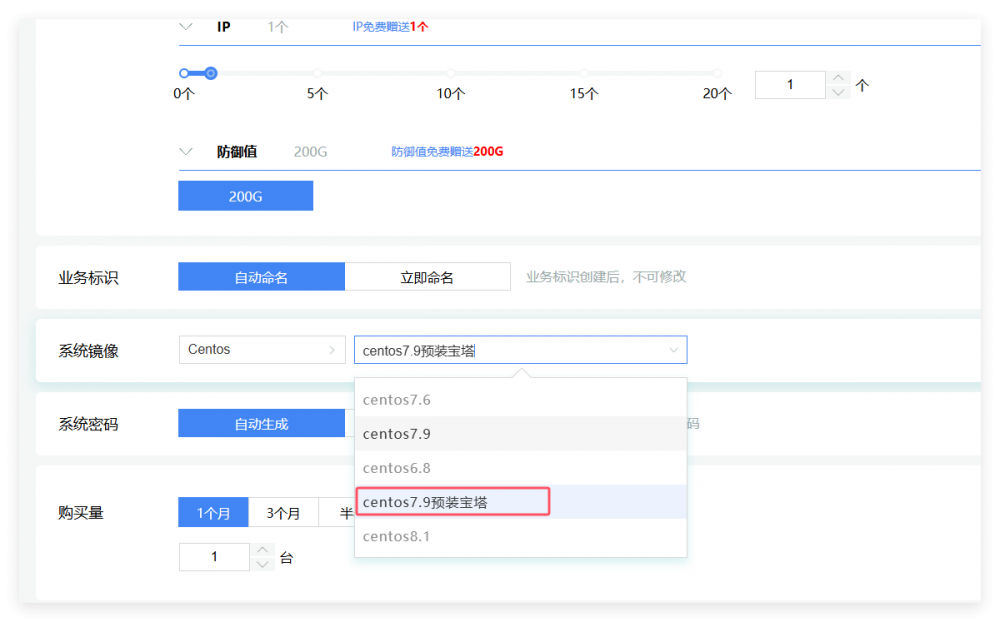 這里注意,系統鏡像要選擇centos7.9預裝寶塔,免去搭建寶塔,又少操作一步了。